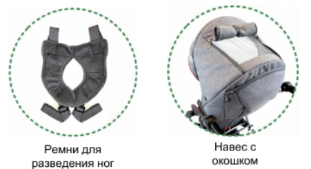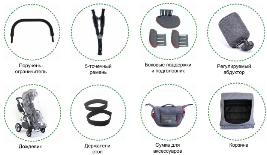 Регулировка угла наклона спинки Регулировка угла наклона сиденья Блокировка передних колес Функция перестановки сиденья по направлению Регулировка спинки по высоте Регулировка глубины сиденья Регулировка ширины сиденья Съёмное сиденье |