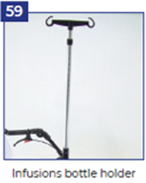 - Держатель кислородного баллона (d=100 мм) для бутылок до 40см/ 75 см* (57) + Механизм регулировки угла держателя кислородного баллона (58)