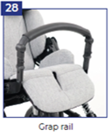- Терапевтический столик антрацит (возможно только с держателем для принадлежностей (27) и возможно только с сиденьем, установленным по направлению движения И невозможно при использовании бедренных поддержек)