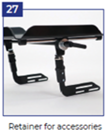 - Терапевтический столик прозрачный* (возможно только с держателем для принадлежностей (27) и возможно только с сиденьем, установленным по направлению движения И невозможно при использовании бедренных поддержек)