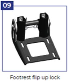 - Короткая подножка, регулируемая по углу наклона 85 - 170° с кронштейном и фиксатором опрокидывания подножки (длина голени 15-36 см)