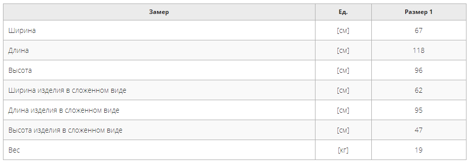 ВНИМАНИЕ: Допуск размеров указанных в таблице составляет +/- 1 см.