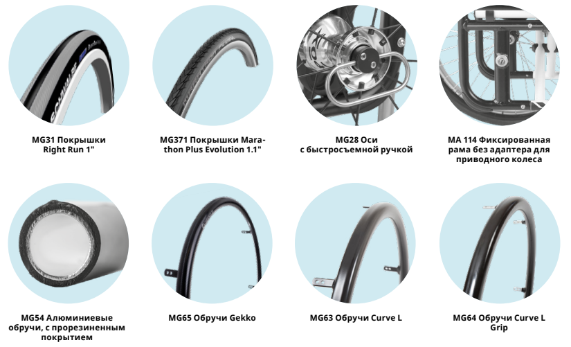 - Покрышки приводных колес на выбор ( пневматические стандартные 24"/ Schwalbe RightRun22", 24",25"/ литые 24")