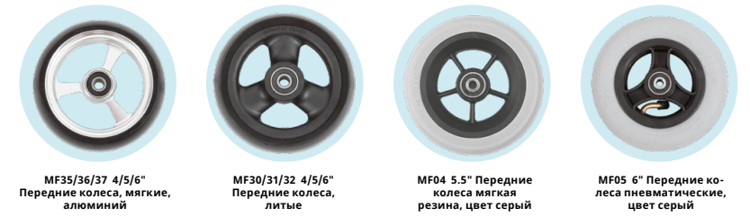 - Передние колеса из мягкой резины диаметр 4"/5"/6" (замена стандартных при производстве)