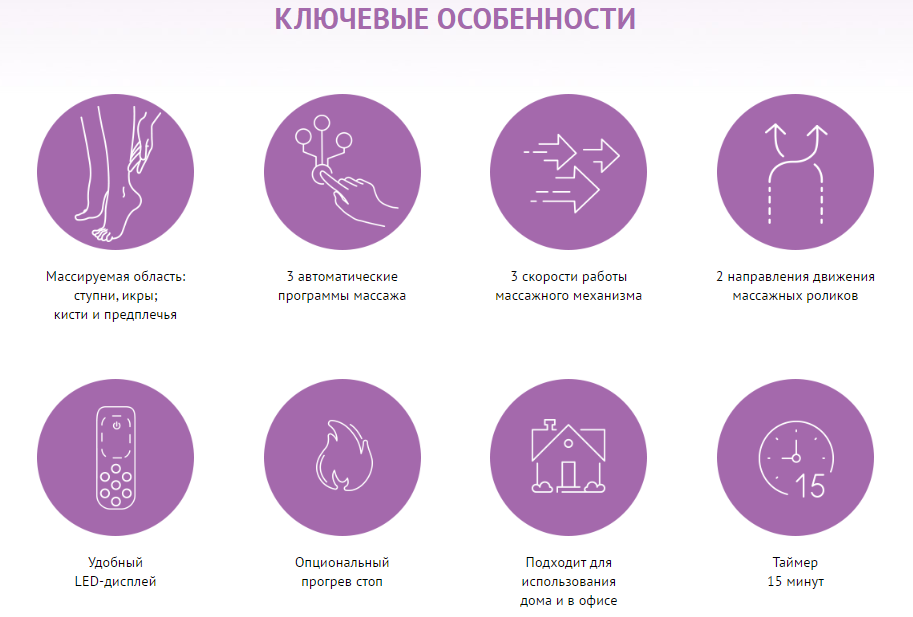 Конструкция прибора продумана до мелочей: примите положение лежа или сидя, запустите комплексный массаж рук или голени.