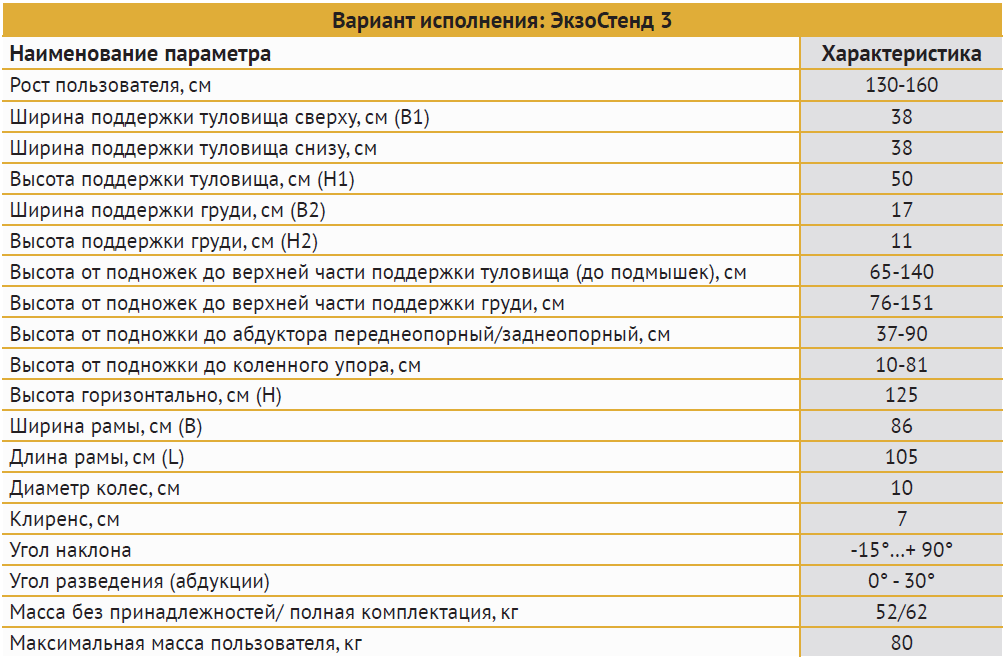 ЭКЗОСТЕНД. Размер 3: рост пользователя от 130 до 160 см, вес до 80 кг.