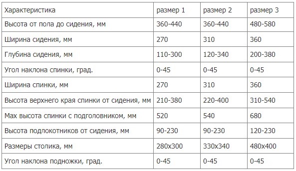 - регулировка столика по высоте и расстоянию до спинки